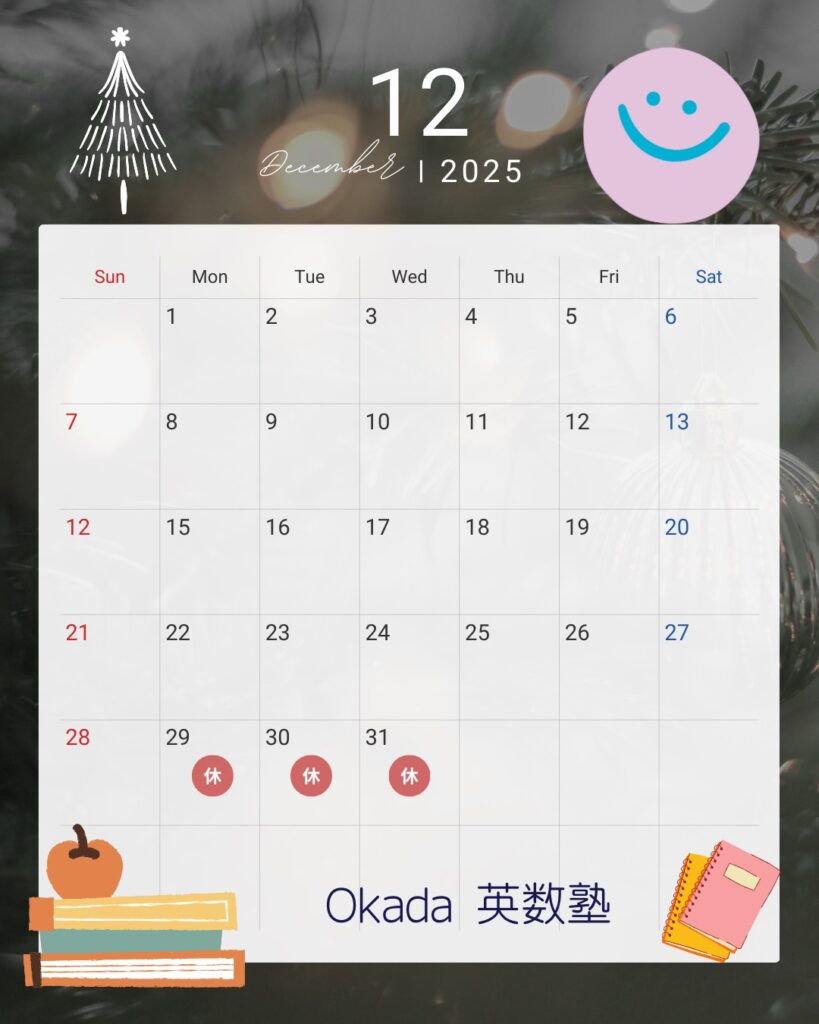 大晦日ですね♪今年はOkadaオンライン英数塾と並行して、対面型のOkada英数塾を開塾させて頂き、沢山の出会いと学びがありました。ありがとうございました。第一志望に全員無事に合格したり、1年生から指導していた生徒さんが英検準2級に合格したり、英語が... お知らせ